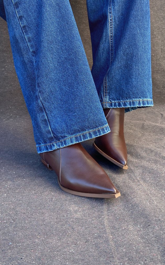 A bota de cano curto com bico fino da Magnata Calçados é um ícone que combina sofisticação e versatilidade. Seu bico fino e o salto baixo exclusivo, o Mini Escultura, evocam inspiração na arte e na arquitetura. Com linhas limpas e minimalistas, o cabedal é composto por detalhes refinados e acabamentos manuais, criando uma peça que exala elegância e personalidade marcante.