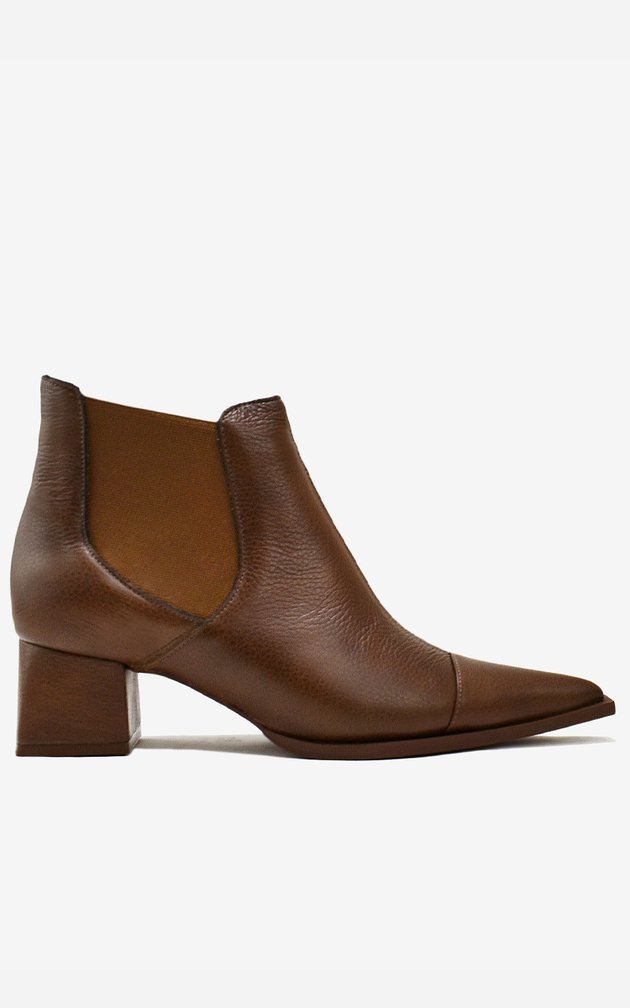 - 1 Bota Marrom Amêndoa de Cano Baixo e Salto Médio.