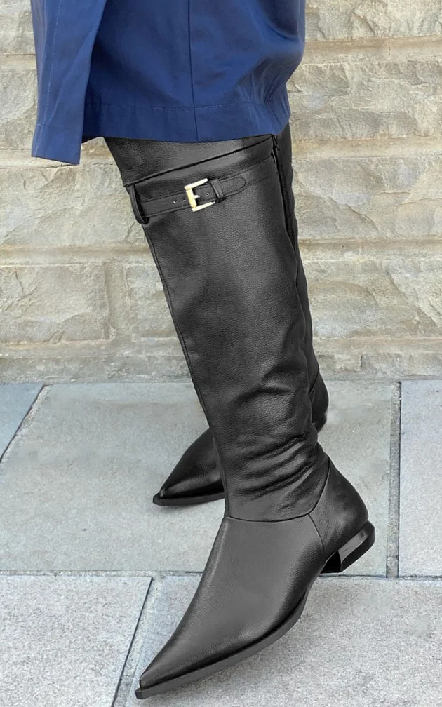 A bota de cano longo over the knee com bico fino da Magnata Calçados, confeccionada em couro legítimo macio, é um ícone atemporal que une sofisticação e versatilidade. Seu design valoriza o bico fino e o exclusivo salto baixo Mini Escultura, criando um equilíbrio perfeito entre conforto e elegância.