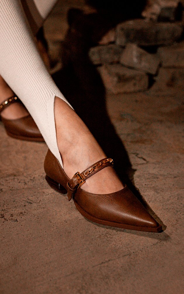O bico fino alonga a silhueta e traduz presença com delicadeza. Já o salto baixo revela a elegância em sua forma mais funcional, ideal para quem busca sofisticação no cotidiano. Oferece estabilidade e conforto absoluto sem abrir mão do estilo. Uma escolha que revela sutileza e confiança em cada passo.