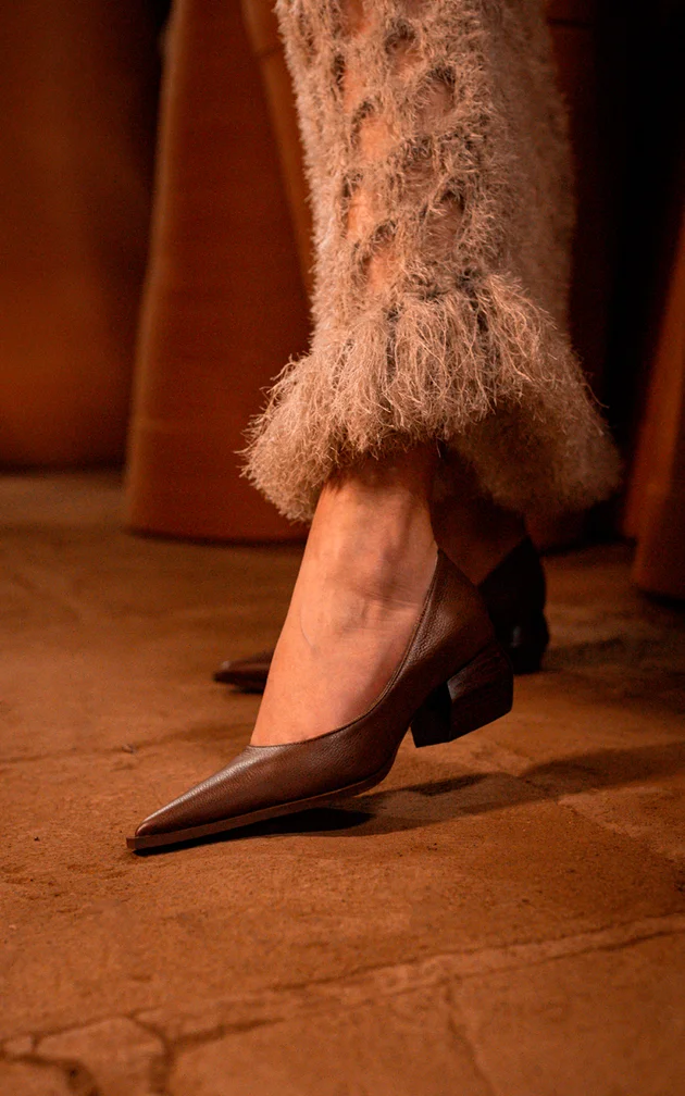 Cada linha deste scarpin reflete a harmonia entre força e sutileza. Seu design limpo expressa uma beleza autêntica e sofisticada, onde o minimalismo e a personalidade caminham juntas.