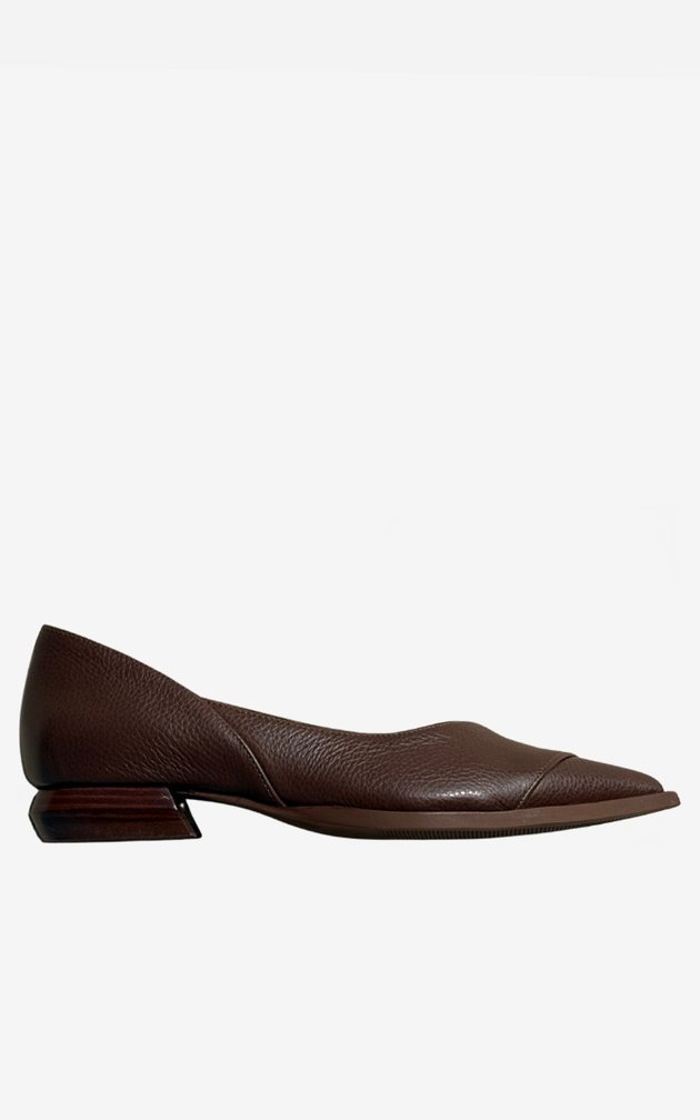 O bico fino alongado projeta presença e confiança, enquanto o salto mini escultura sustenta com firmeza e originalidade. Cada elemento reforça a personalidade marcante da mulher que não se limita ao óbvio.